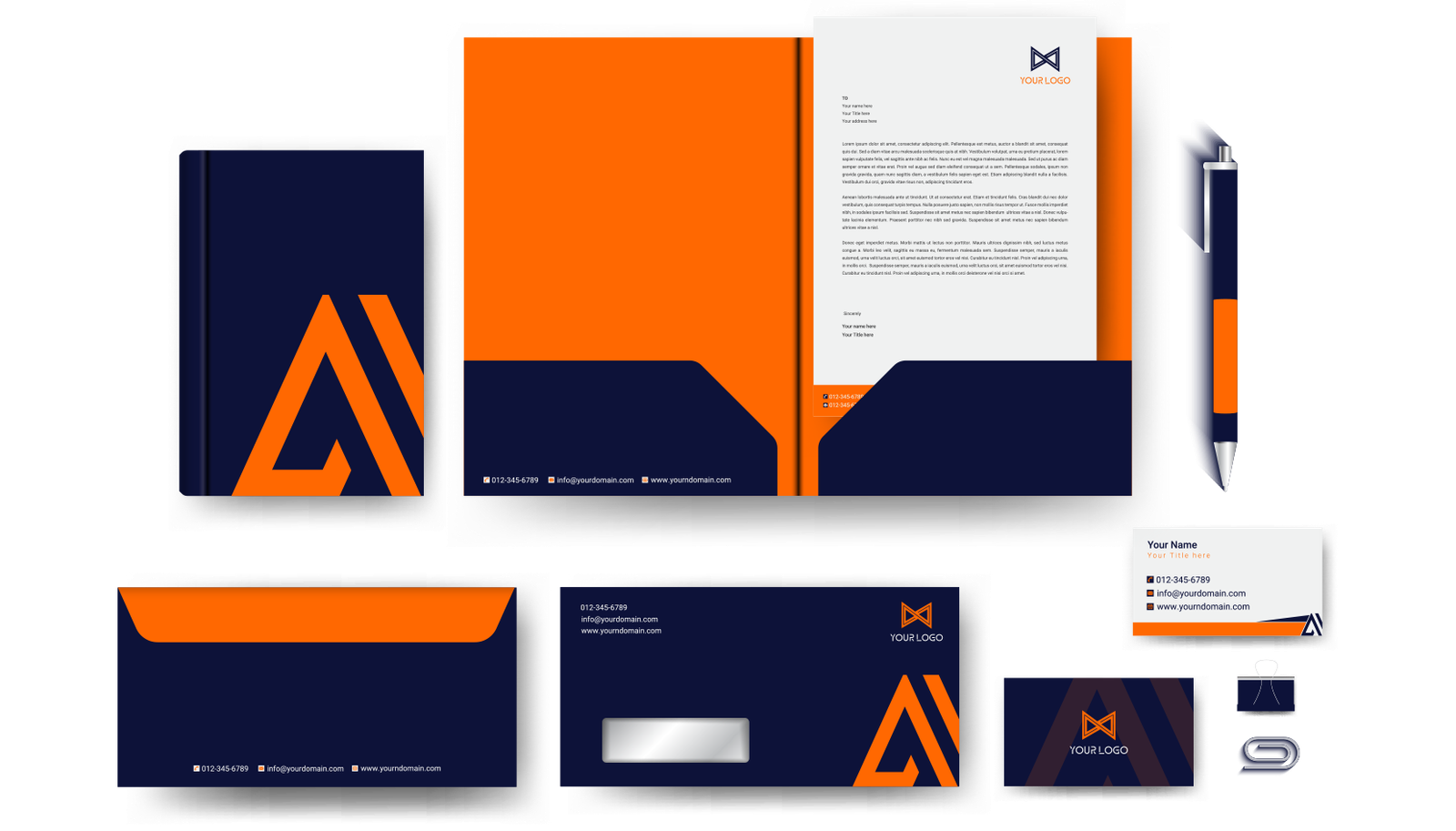 Cartão de visitas físico e virtual, papel timbrado e assinatura de